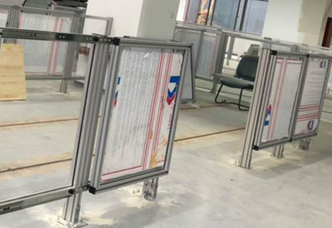 設(shè)備防護(hù)圍欄是在設(shè)備外圍建立安全范圍防護(hù)措施,以劃分安全范圍,阻隔人或物與設(shè)備直接接觸,起到安全警示作用,常和報(bào)警及斷電設(shè)備配套使用??蚣懿糠质褂娩X型材,配合絲網(wǎng)、亞克力、PC等各類板材,通過鋁型材配件安裝膨脹螺栓連接鋁型材立柱和地面。