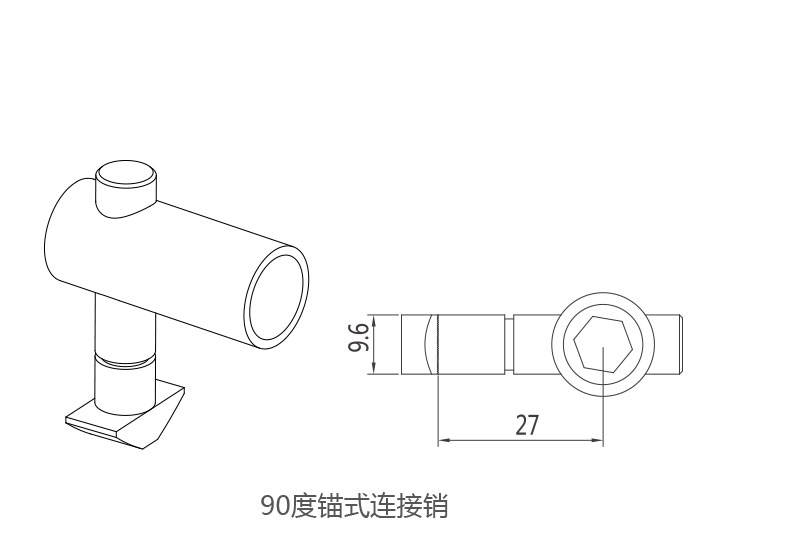 用于兩根鋁型材90度的直角連接。安裝時,它隱藏在型材內部,請根據實物加工孔位。
