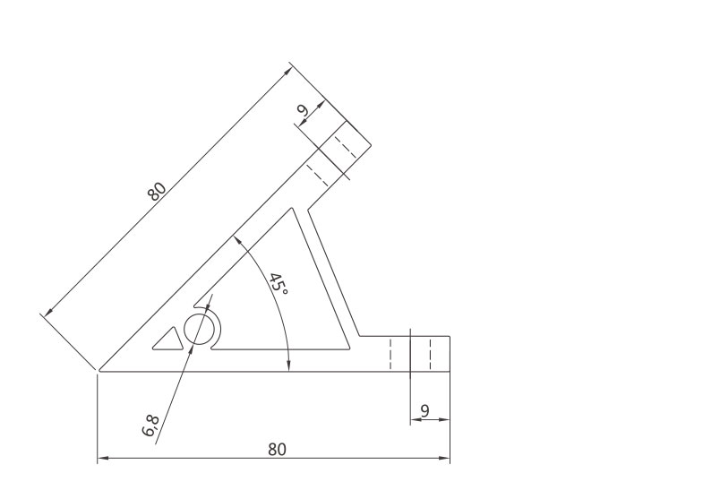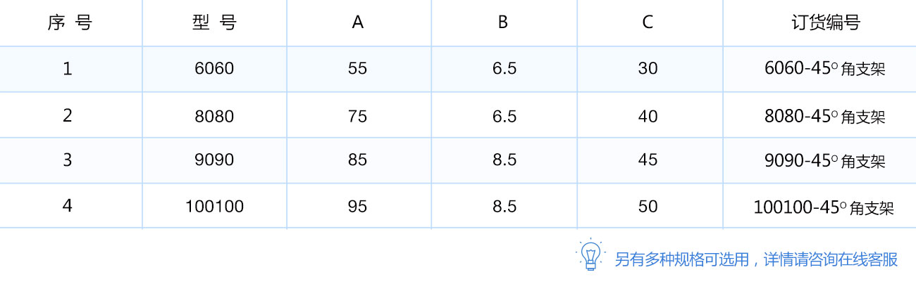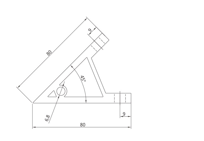 45度支架是從擠壓型材上截取料段,經(jīng)鉆孔加工而成。表面銀白陽(yáng)極氧化(端面未氧化),連接強(qiáng)度高。靈活性和通用性能好,安裝簡(jiǎn)單方便。主要用于型材的45度角連接。