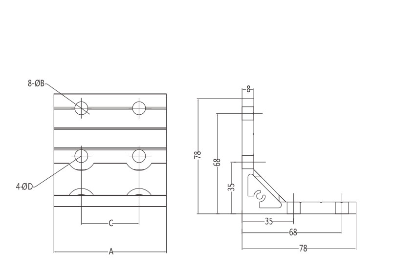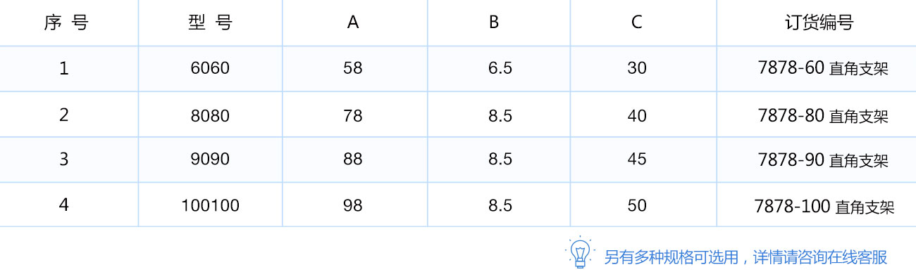 直角支架是從擠壓型材上截取料段,經(jīng)鉆孔加工而成。表面銀白陽極氧化(端面未氧化),連接強度高。靈活性和通用性能好,安裝簡單方便。主要用于型材的T型、L型、或十字連接。注:可根據(jù)客戶需要進行特殊加工。