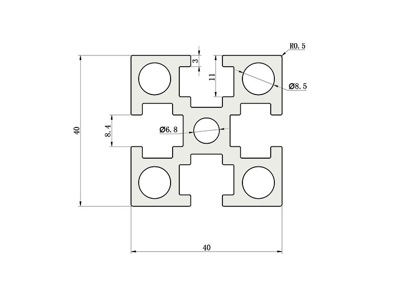 適用于應(yīng)力及強(qiáng)度較大的框架組合結(jié)構(gòu),它的外型采用直角過渡,表面經(jīng)過陽極氧化處理,高雅美觀并抗腐蝕,它通常采用M6X20高強(qiáng)度專用螺栓的內(nèi)部連接方式,堅固而又可靠,是工業(yè)框架應(yīng)用較為廣泛的型材之一。