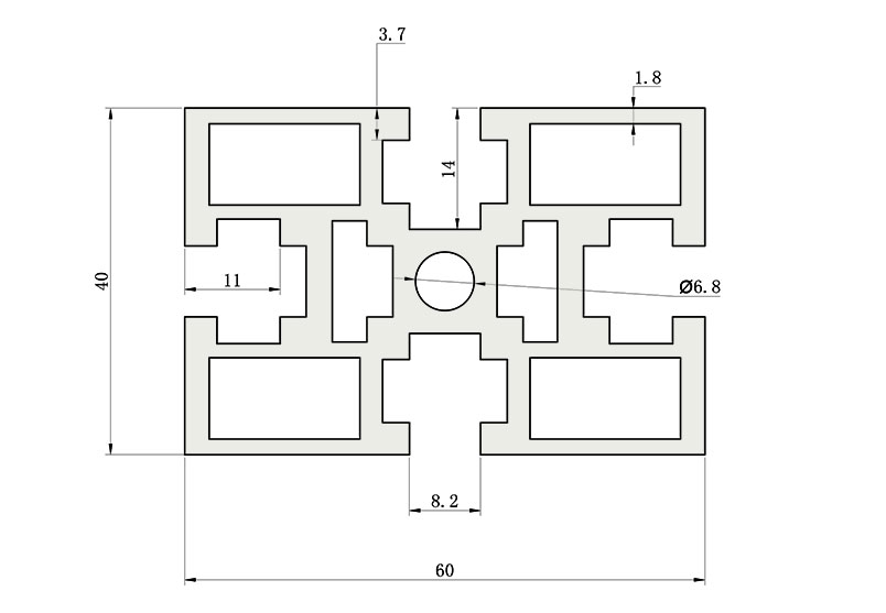 適用于應(yīng)力及強(qiáng)度較大的框架組合結(jié)構(gòu),它的外型采用直角過渡,表面經(jīng)過陽極氧化處理,高雅美觀并抗腐蝕,它通常采用M6X20高強(qiáng)度專用螺栓的內(nèi)部連接方式,堅固而又可靠,是工業(yè)框架應(yīng)用較為廣泛的型材之一。