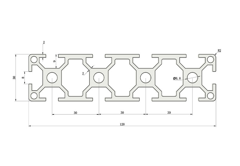 適用于應力及強度較大的框架組合結構,它的外型采用圓角過渡,表面經過陽極氧化處理,高雅美觀并抗腐蝕,它通常采用M8X20高強度專用螺栓加彈性扣件的內部連接方式,堅固而又可靠,是工業(yè)框架應用較為廣泛的型材之一。